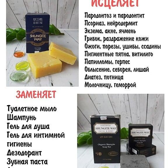 Доказано и восстанавливающее действие шунгитового мыла на поврежденные участки кожного покрова. Ежедневное применение средства устраняет сыпь и черные точки на лице, а ссадины заживают быстрее. Структура мыла состоит из крошки шунгитового камня и помогает бороться с проявлениями псориаза, дерматита, экземы и других кожных дерматологических и аллергических заболеваний.